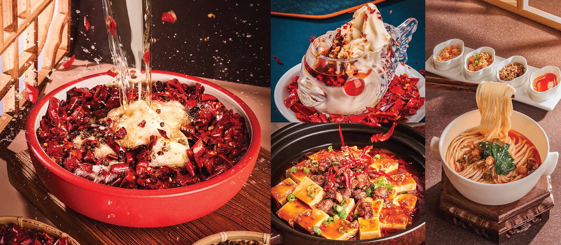 大厨糅合传统温馨的家常菜、讲究麻辣浓香的江湖菜与满载创意的新派菜,通过严选正宗辛香料,借由茂汶红花椒、重庆石柱红辣椒、九叶青花椒及郫县豆瓣酱提色提香,精心秘制出多道招牌美食,演绎麻辣鲜香烫的川菜精髓。